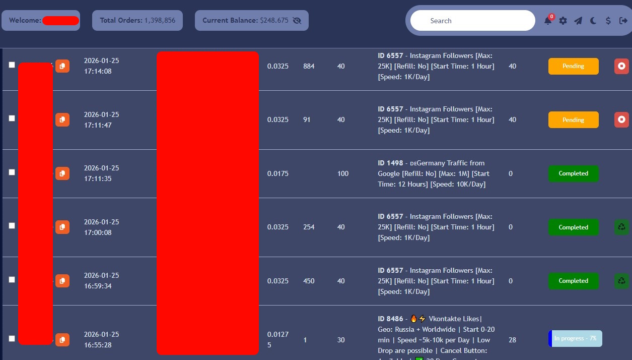 Рекомендую перед большими объёмами всегда тестировать на небольших количествах, и если услуга хорошо сработала - только тогда заказывать более крупные заказы. Есть также уникальные услуги, которых не видел у других поставщиков смм услуг.
